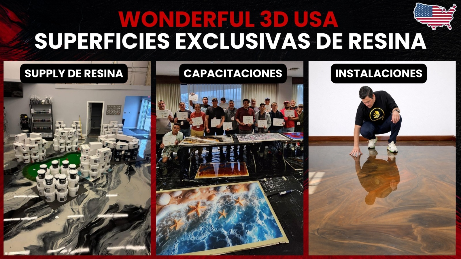 Wonderful 3D nace con la visión de crear un ecosistema profesional enfocado en la resina epoxi, integrando capacitación presencial, aplicación de superficies exclusivas y suministro de sistemas confiables para instaladores y empresas.